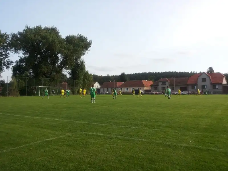 Domácí, od samého začátku, drželi míč a snažili se postupnou kombinací ohrozit naši branku, avšak šance nepřicházela. Stav se měnil až ve 12. minutě, kdy centr z levé strany do branky nešťastně tečoval Karel Kovařík. Prokletí vlastní branky se opakovalo i v 19. minutě. Tentokrát byl nešťastníkem Martin Laš, který ve zdi tečoval Průšovu střelu. Poté jsme se dostali do šancí i my, ale Bubák ve slibných příležitostech přestřelil a Martin Laš prováhal přihrávku na zcela osamoceného Sobotku.